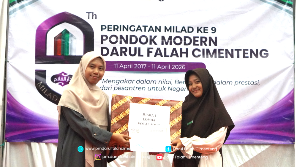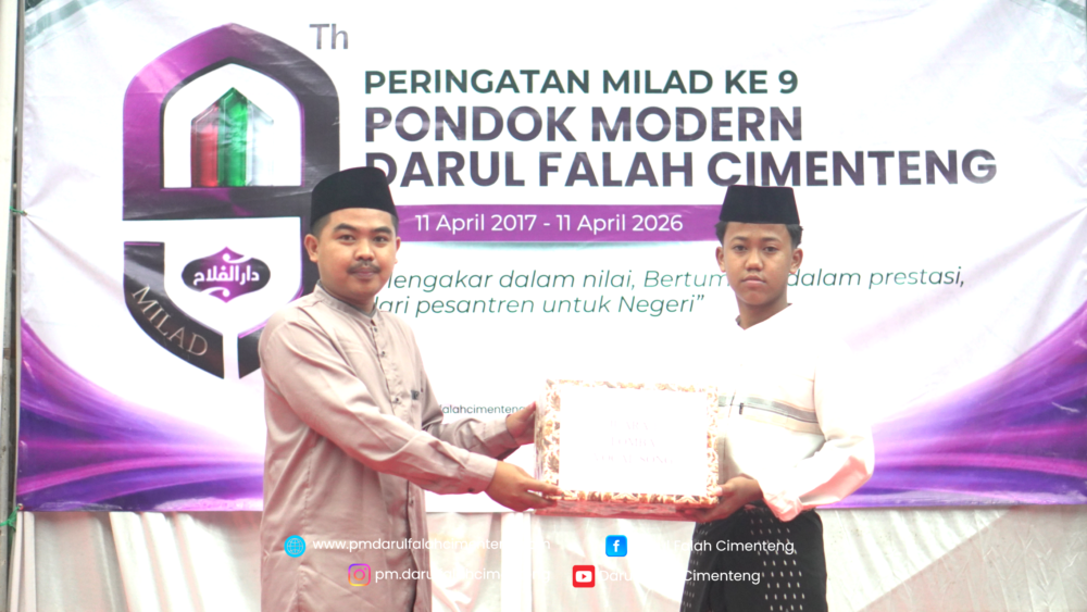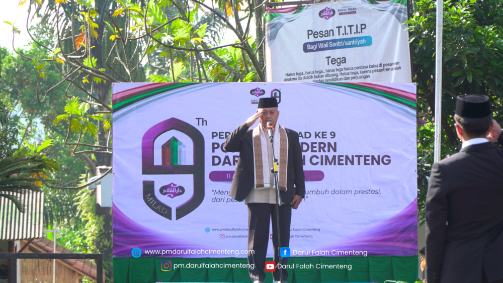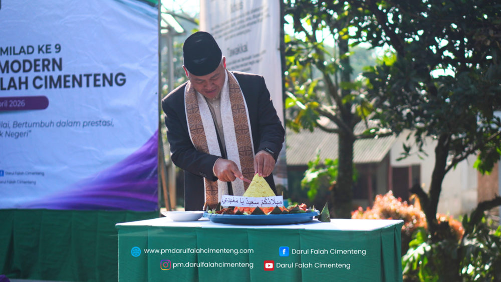 “Tepat pada 11 April 2026, Pondok Modern Darul Falah Cimenteng telah menginjak usia sembilan tahun, sebuah perjalanan yang penuh perjuangan, pengorbanan, dan harapan untuk terus melahirkan generasi unggul,” ungkap beliau.