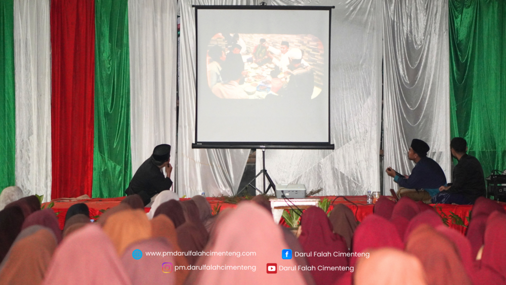 Sebagai penutup, kegiatan diakhiri dengan nonton bareng kilas balik perjalanan Pondok Modern Darul Falah Cimenteng dari tahun ke tahun. Momen ini menjadi sarana refleksi sekaligus ungkapan rasa syukur atas setiap proses, perjuangan, dan pencapaian yang telah dilalui hingga usia ke-9 ini.