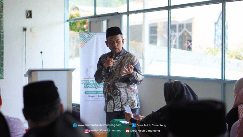Senin, 10 November 2025, Pondok Modern Darul Falah Cimenteng menjadi tuan rumah rangkaian Pelatihan Da’i Transformatif Dompet Dhuafa yang berfokus pada penguatan konsep wakaf produktif dan kemandirian ekonomi pesantren. Kegiatan yang dilaksanakan di Aula Gedung Makkah ini diikuti oleh 34 dai dan daiah dari berbagai provinsi. Pembukaan acara menghadirkan Al-Ustadz Komarudin, M.Pd., Pimpinan Pondok, yang memaparkan strategi pengelolaan pondok wakaf secara profesional, mencakup pengembangan unit usaha santri, tata kelola aset, serta integrasi antara pendidikan dan pemberdayaan ekonomi. Kegiatan dipandu oleh Ustadz Asep Hendra, Ketua Dafa Peduli, yang turut mendampingi jalannya acara. Sementara itu, Ustadz Muhammad Gufron Santoso mewakili para dai memberikan sambutan berisi dorongan agar pelatihan ini menjadi langkah strategis dalam memperluas kebermanfaatan dakwah berbasis wakaf.