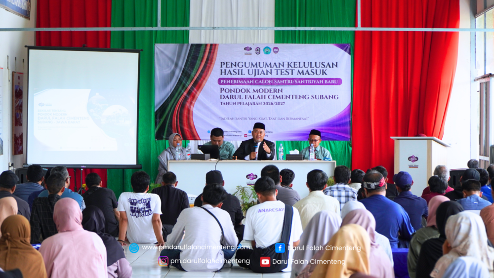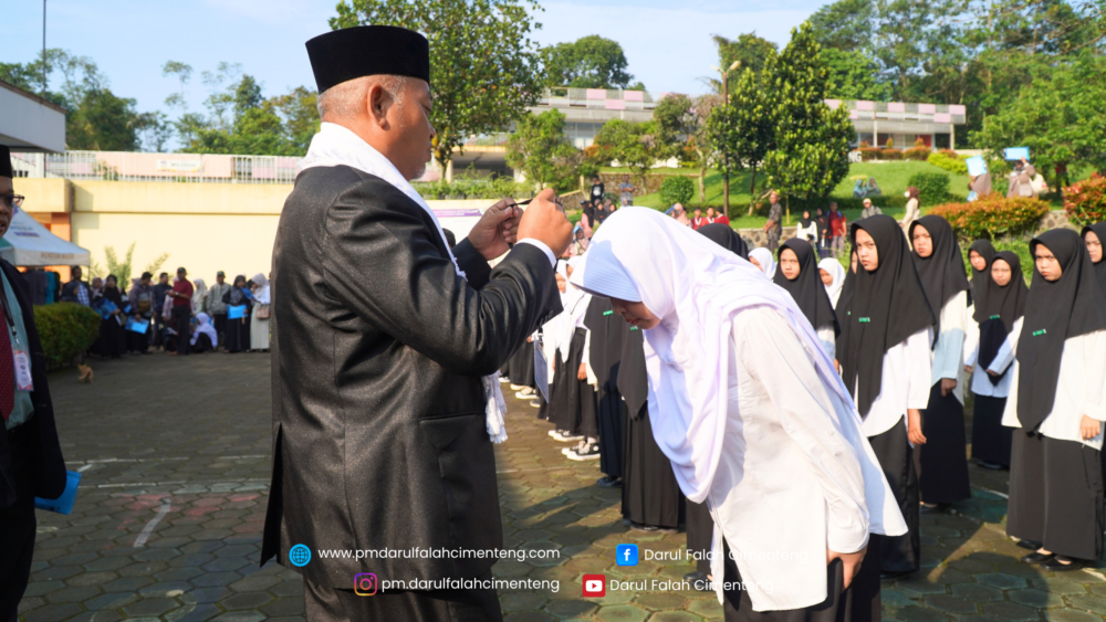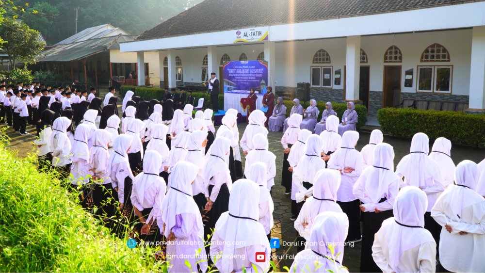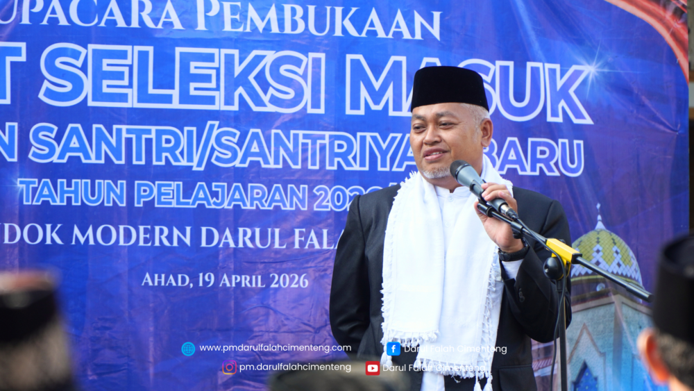 Ahad, 19 April 2026, Pondok Modern Darul Falah Cimenteng menyelenggarakan upacara pembukaan tes seleksi calon santri/santriyah baru Tahun Pelajaran 2026/2027 dengan suasana yang khidmat, tertib, dan penuh semangat. Kegiatan ini diikuti oleh seluruh panitia seleksi serta para calon santri/santriyah, bertempat di pelataran Gedung Al-Fatih.