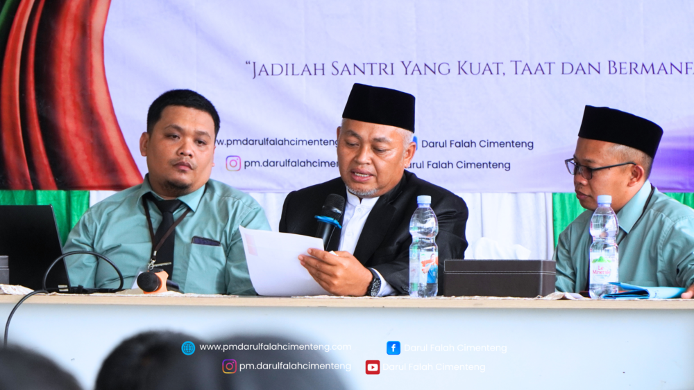 Kegiatan ini turut didampingi oleh Kepala Sekolah SMP IT Darul Falah Cijambe, Bapak Suryana Setiawan, S.Pd., beserta jajaran bagian pengajaran, bendahara pondok, serta bagian pengasuhan putra dan putri. Rangkaian kegiatan dilaksanakan di Aula Gedung Makkah dalam suasana yang khidmat dan penuh harapan.